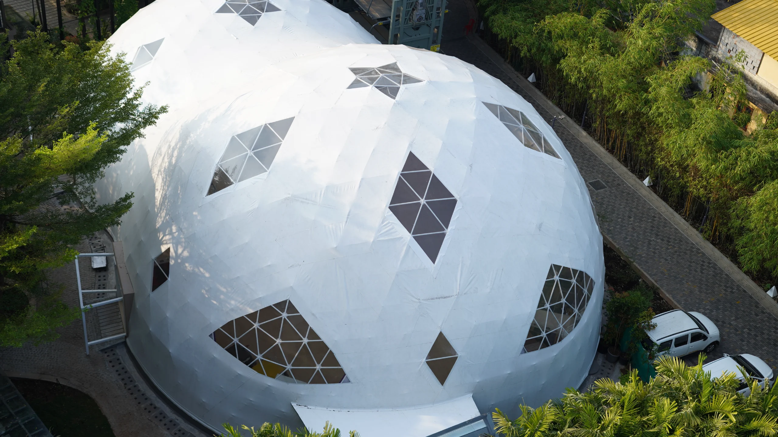 About ProjectAbout Project Description Designed for Hycinth Hotel, Trivandrum Confluence is a visually stunning geodesic dome designed for events and weddings. Standing 30 feet high and covering 6,750 square feet, this venue is a testament to innovative design. Bathed in natural light, the dome creates an ethereal ambiance that is both intimate and grand, providing …